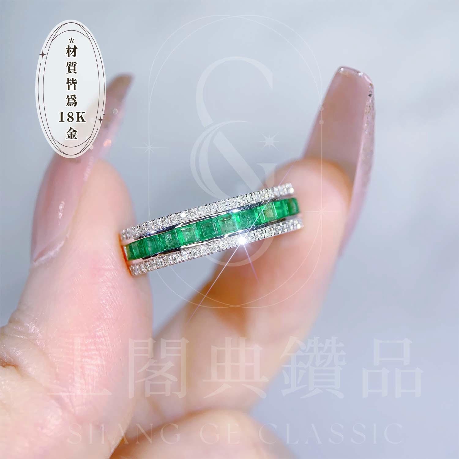 18K天然鑽石-祖母綠極簡戒指