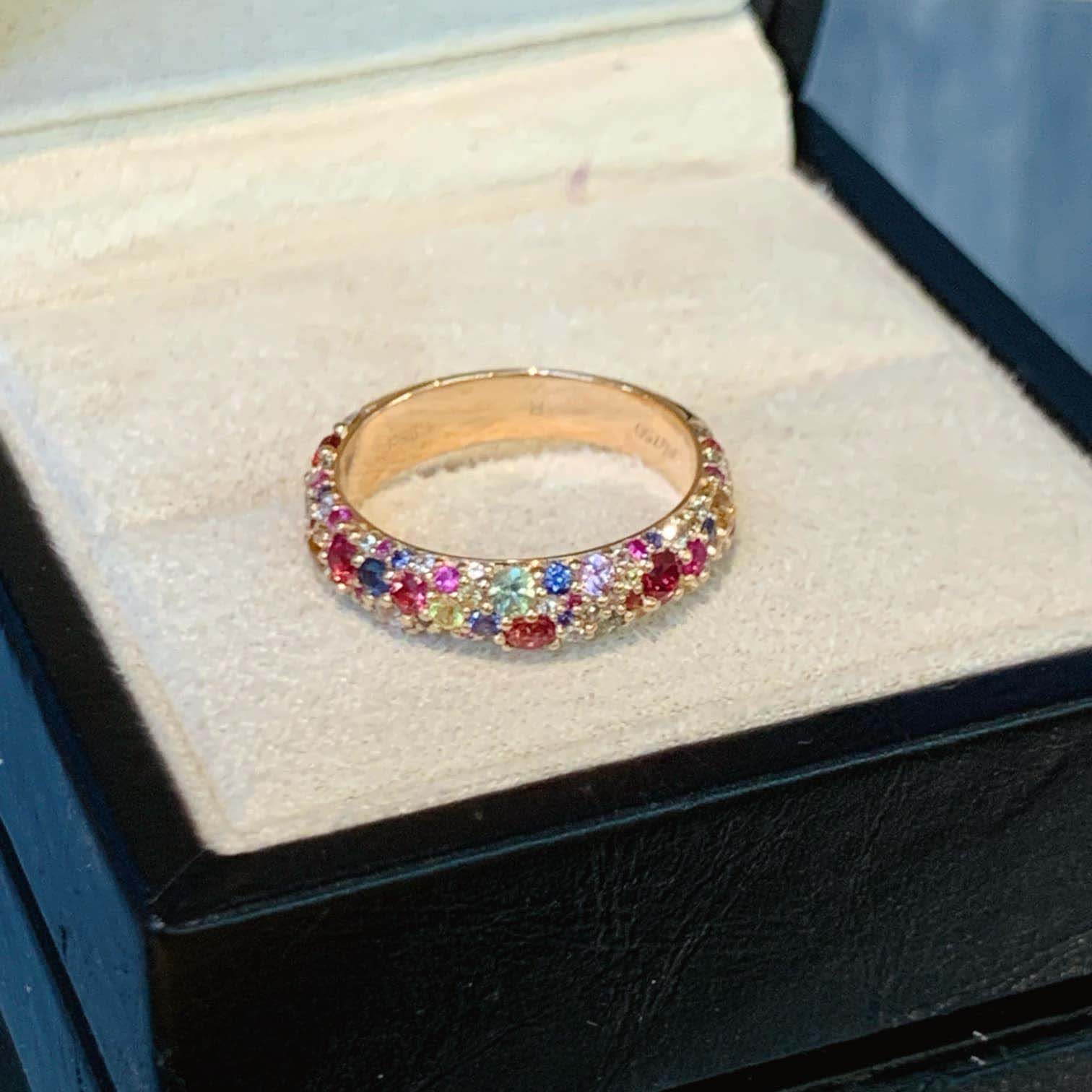 18K天然彩色藍寶石-莫奈花園彩虹戒指
