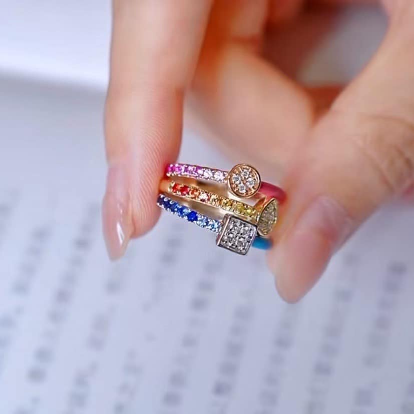 18K天然彩色藍寶石-多巴胺彩虹色戒指