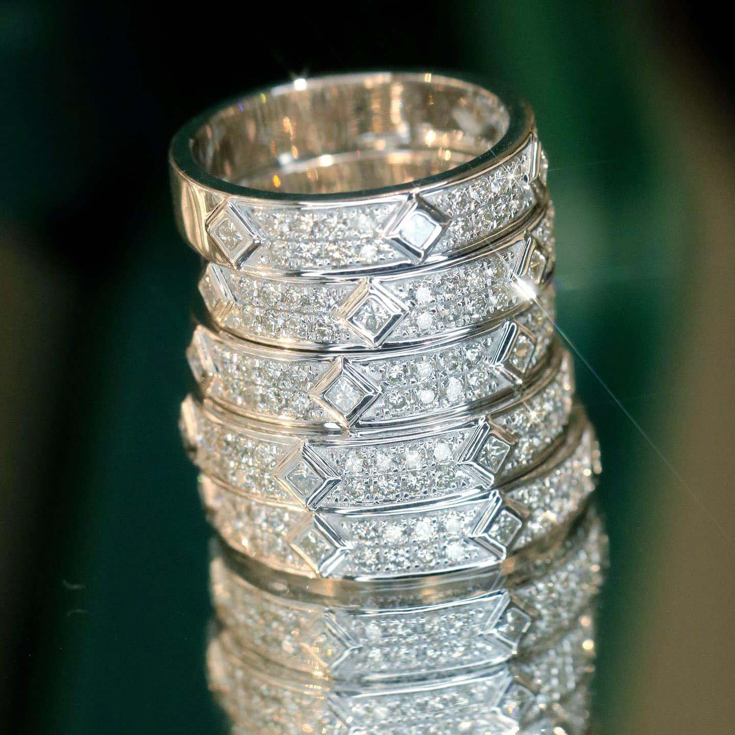 18K天然鑽石-菱形點綴雙排戒指