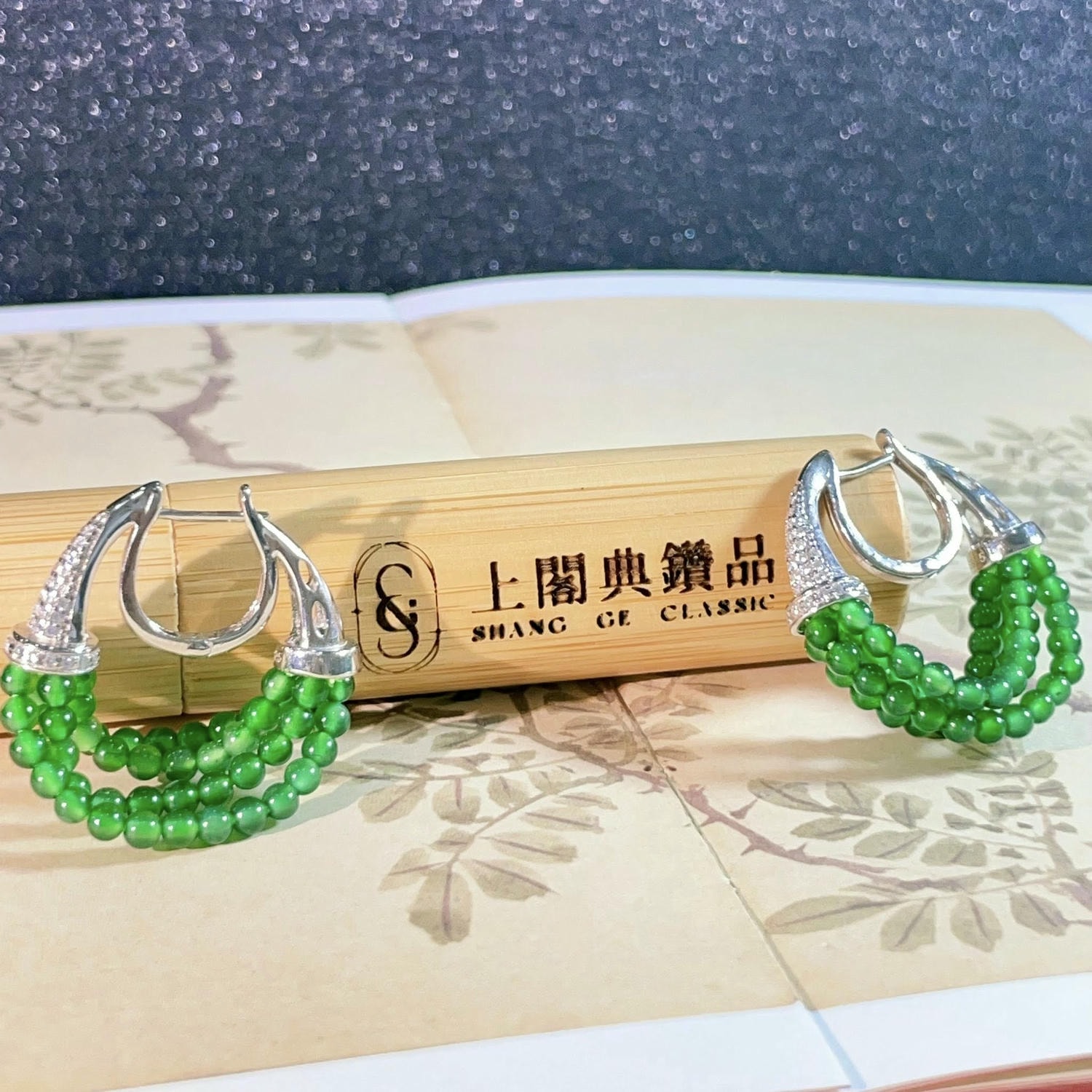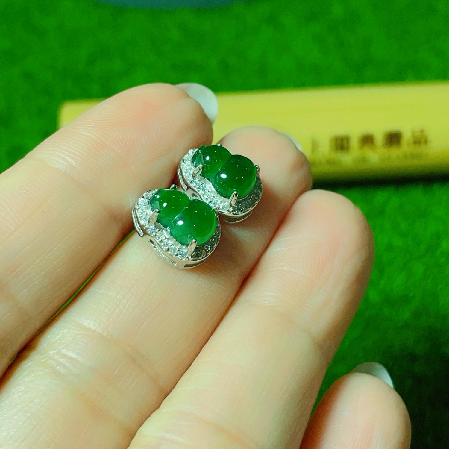 天然翡翠-A貨翡翠放光葫蘆耳環