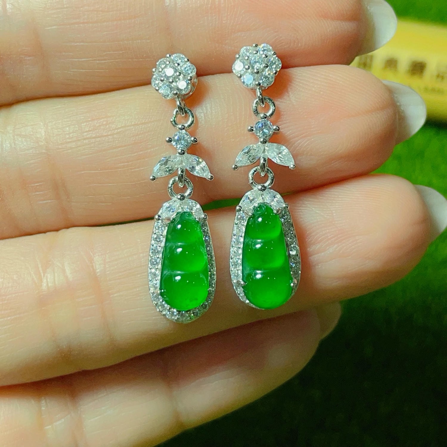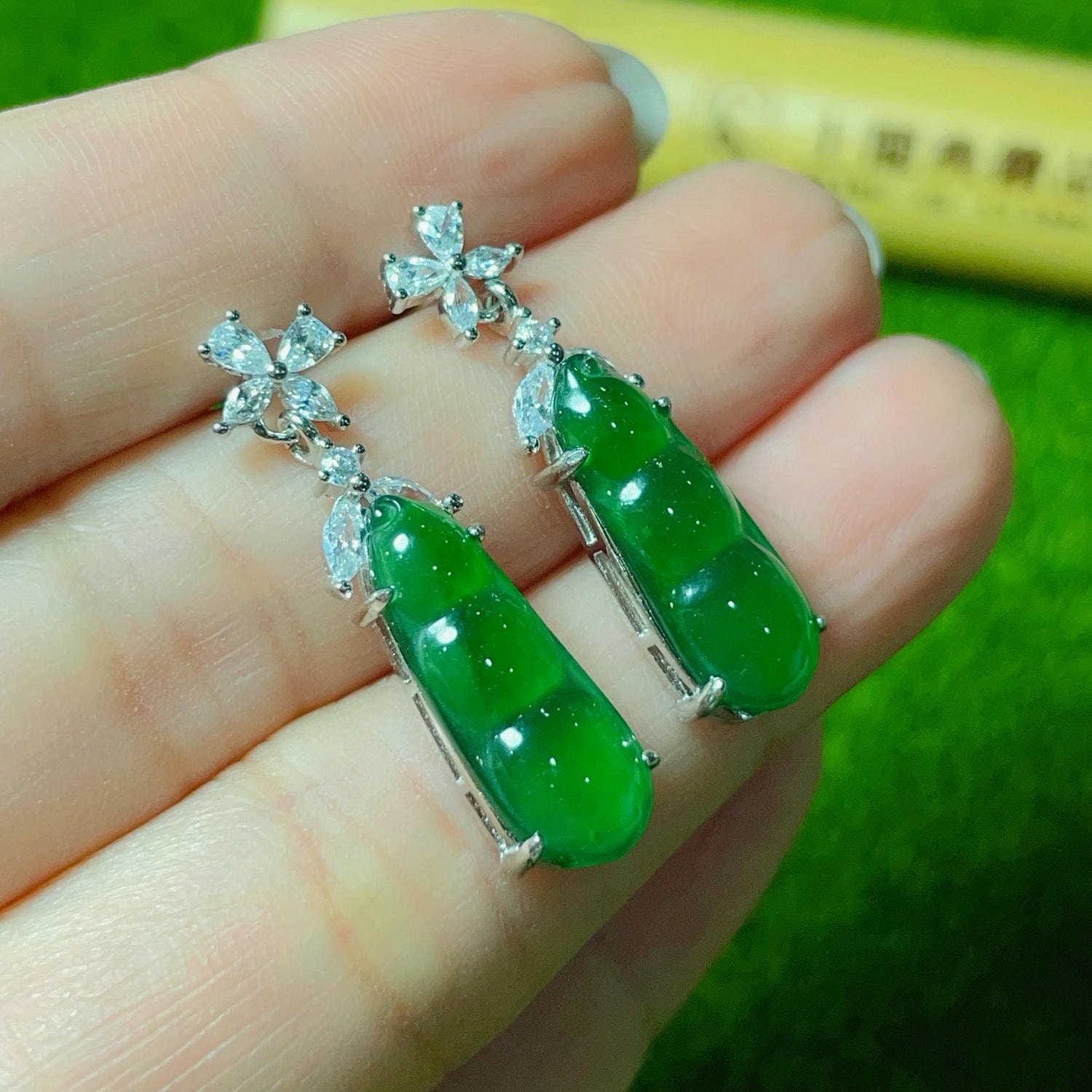 天然翡翠-A貨翡翠超級放光福豆耳環