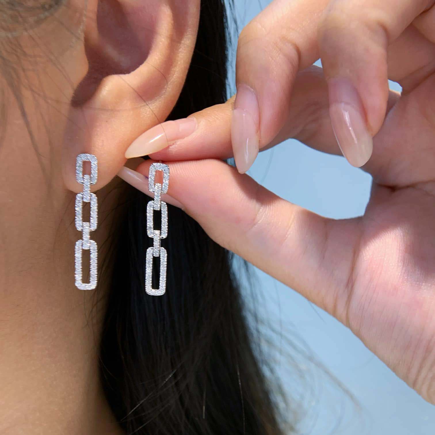 18K天然鑽石-雙排閃耀耳環