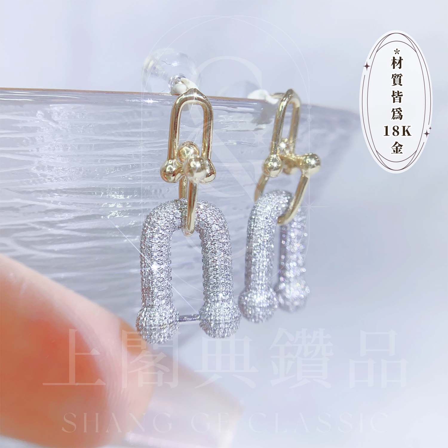 18K天然鑽石-華麗U型耳環
