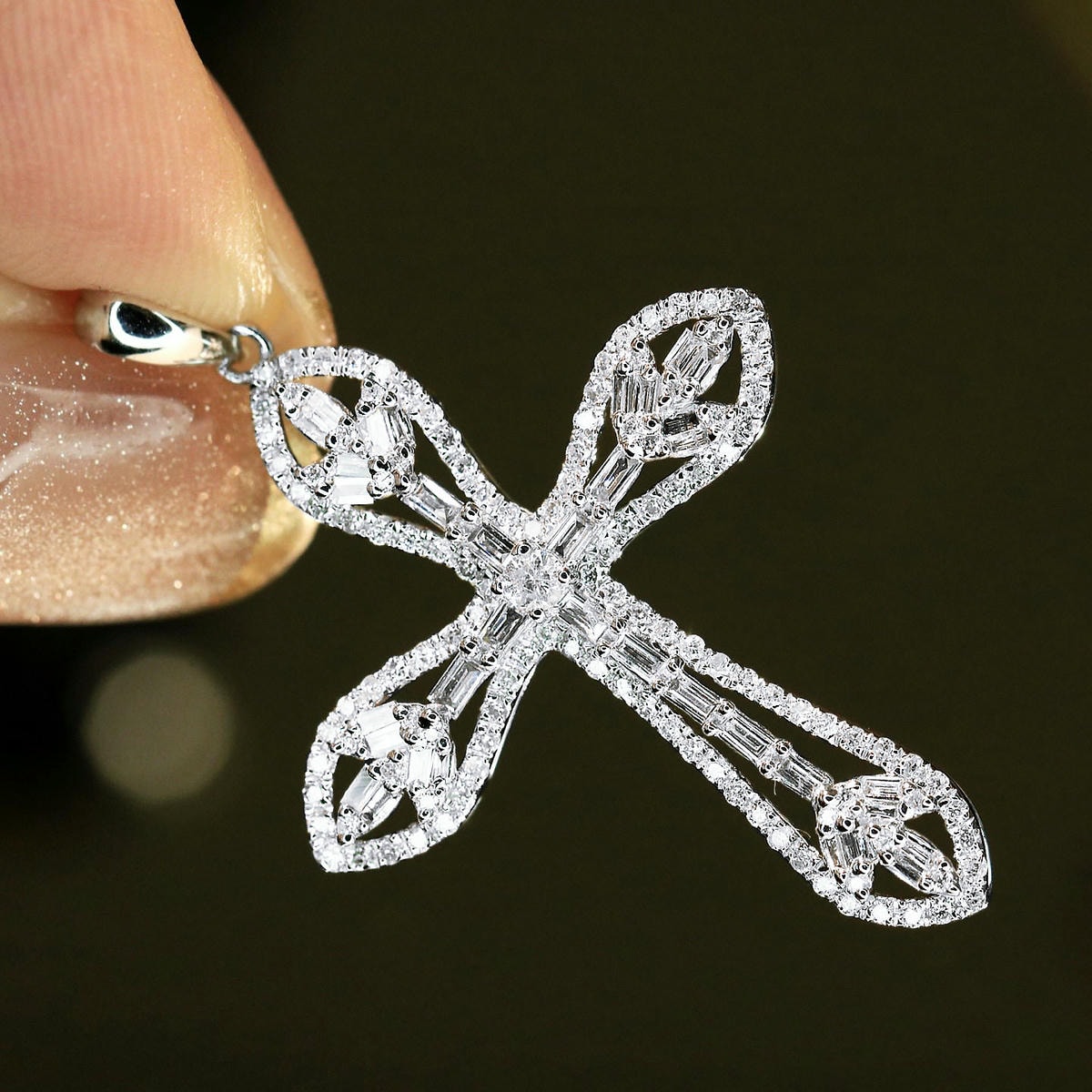 18K天然鑽石-精緻十字架墜飾