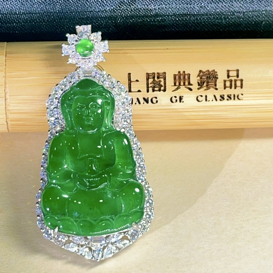 天然翡翠-A貨翡翠寶瓶觀音墜飾