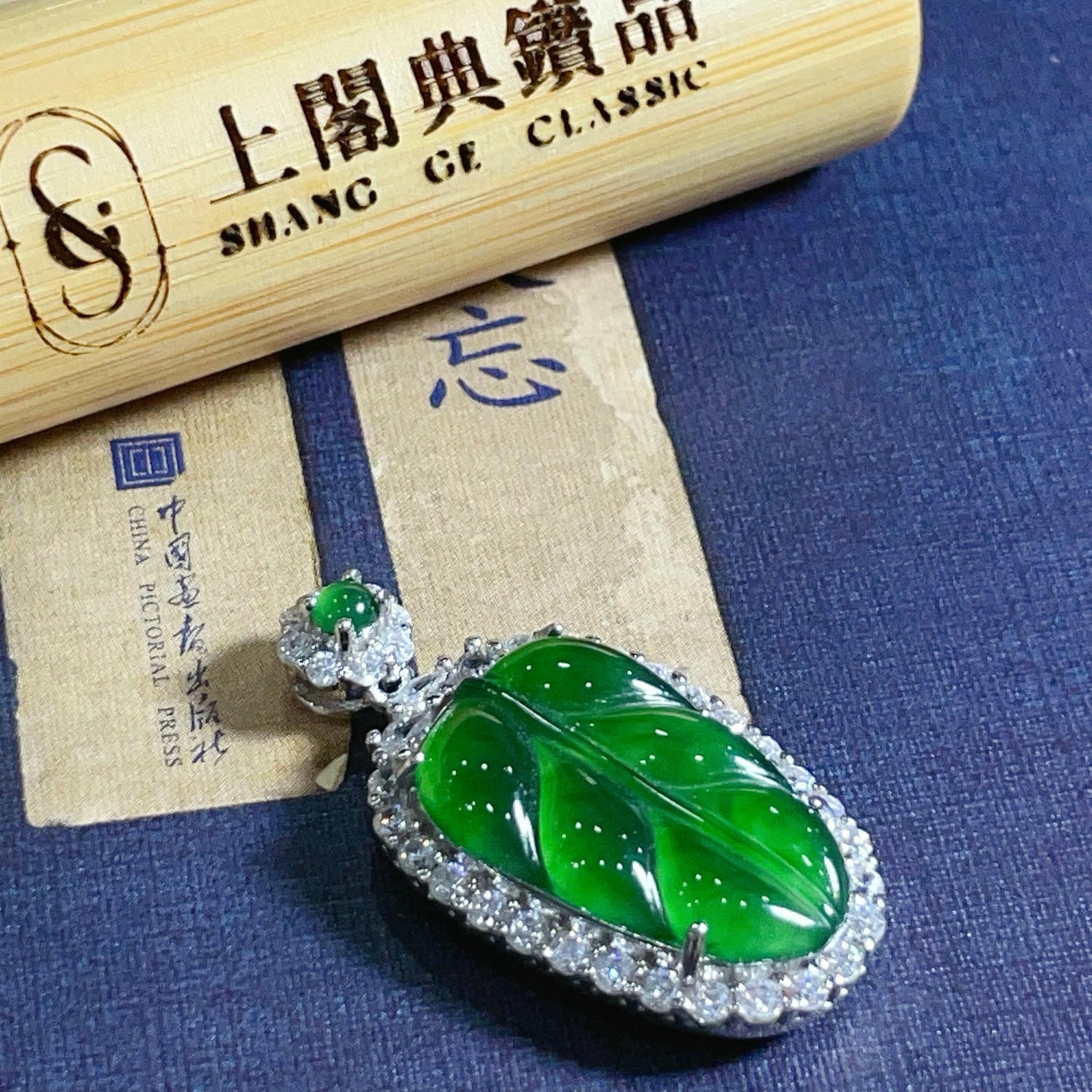 天然翡翠-A貨翡翠綠葉造型墜飾