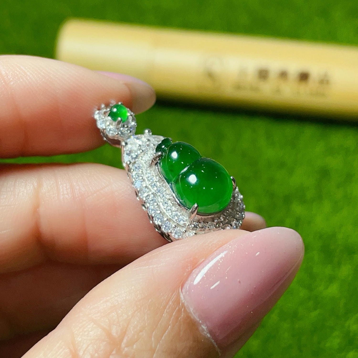 天然翡翠-A貨翡翠葫蘆澎澎澎墜飾