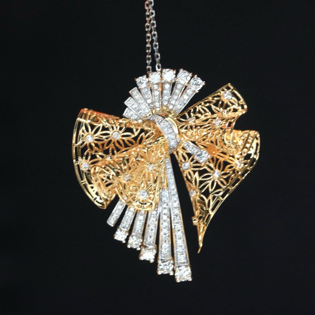 18K天然鑽石-分色工藝胸針墜飾兩用款