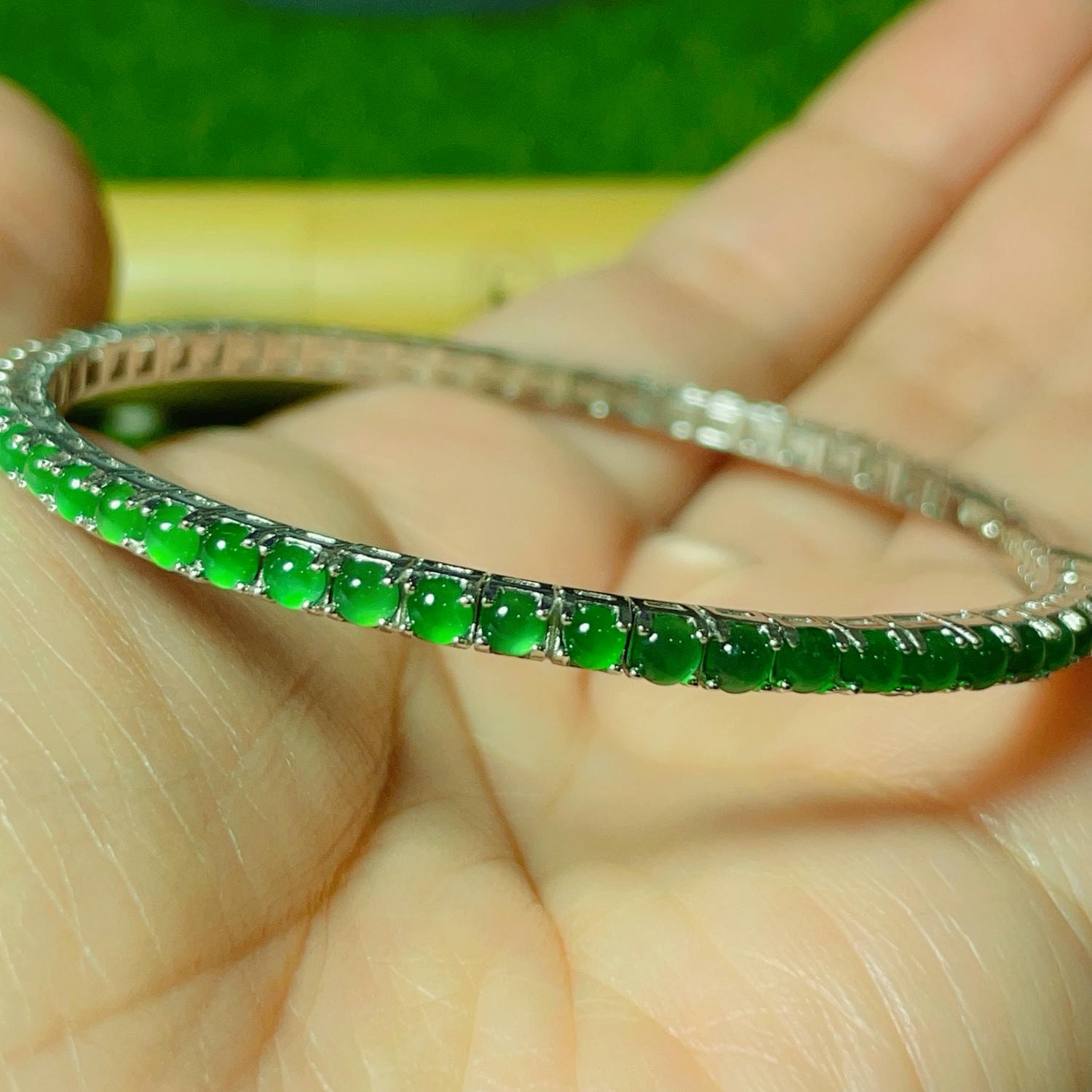 天然翡翠-蛋面翡翠高雅手鍊