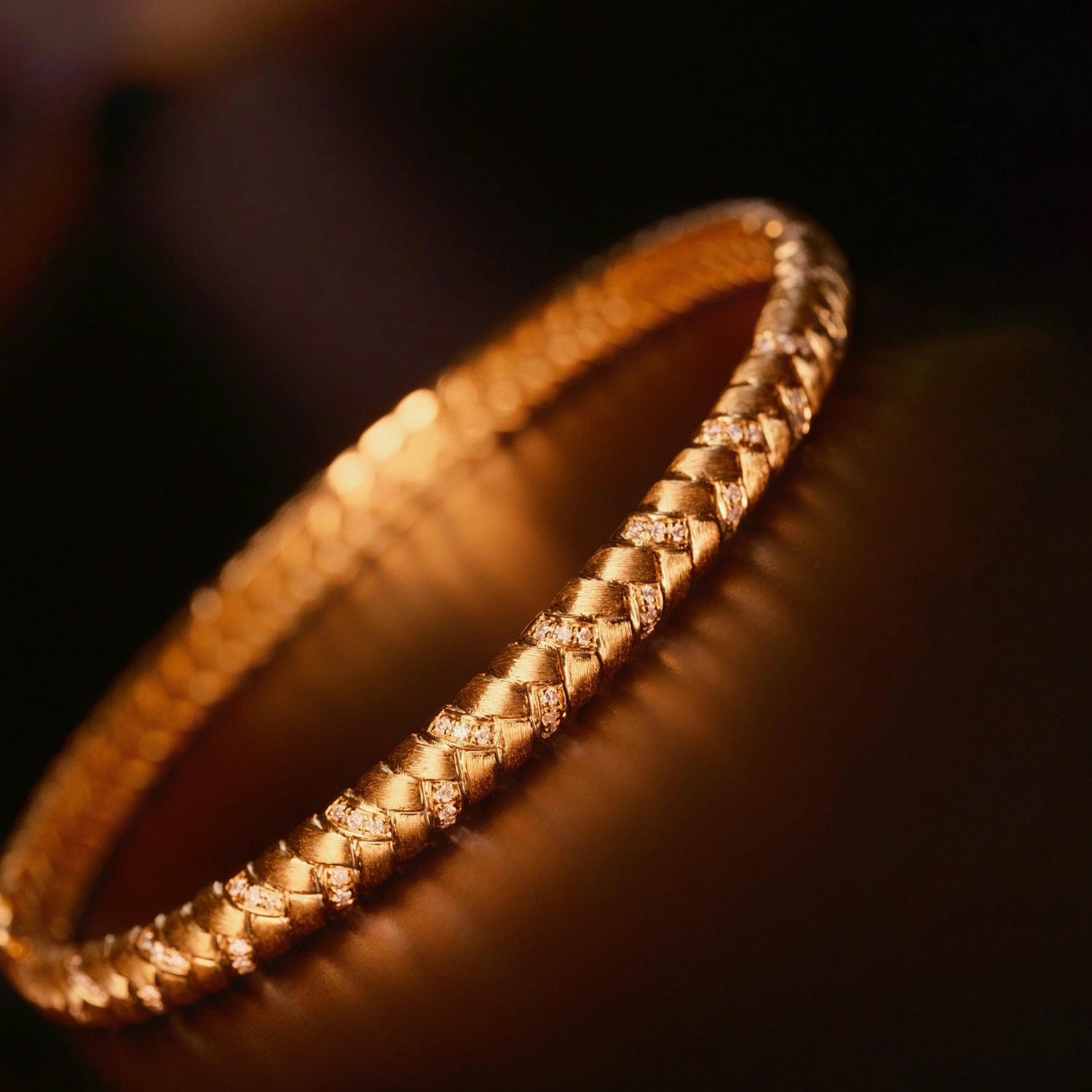 18K天然鑽石拉絲編織手鐲/戒指