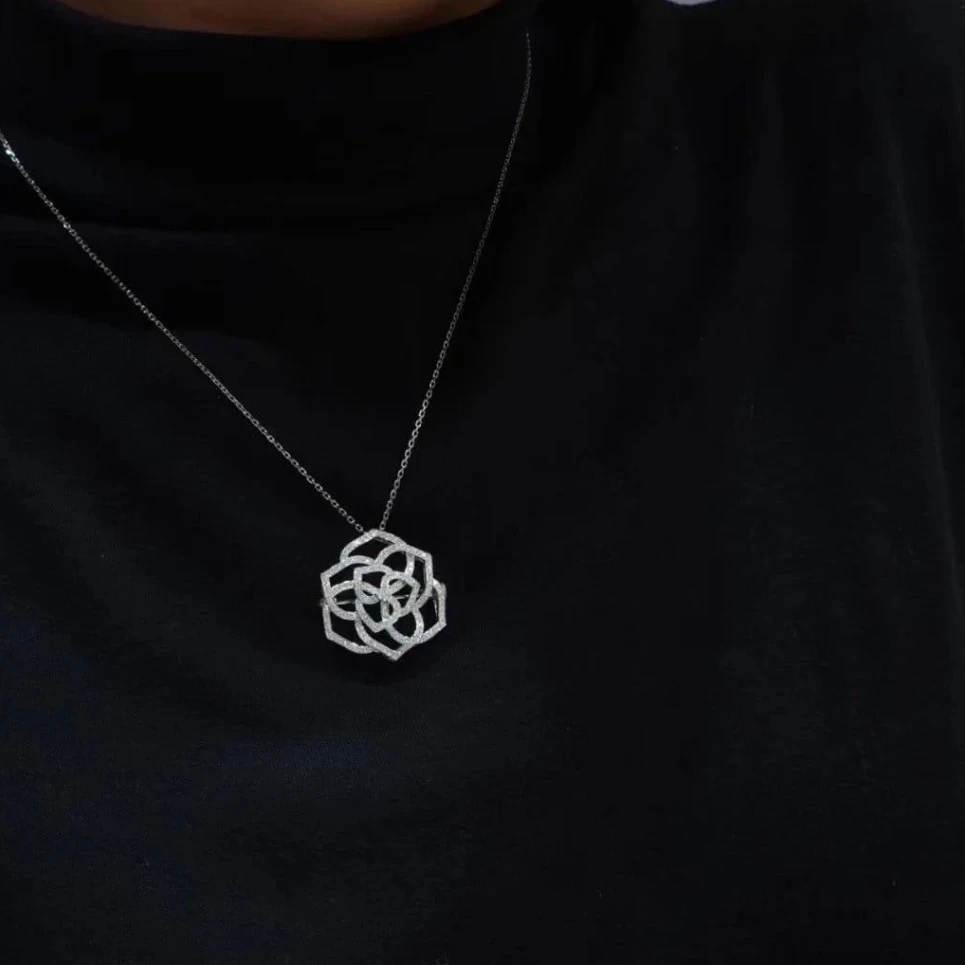 18K天然鑽石-鏤空山茶花胸針墜飾