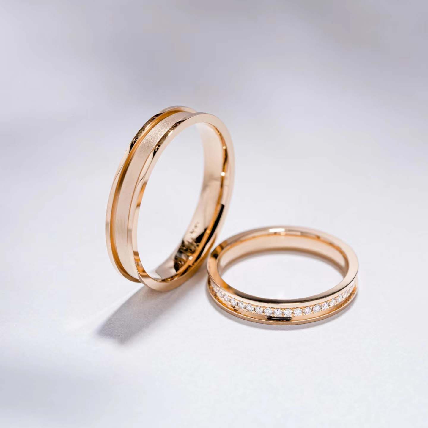 婚戒對戒象徵著兩人之間永恆的愛與承諾,並在日常中隨時陪伴著彼此。