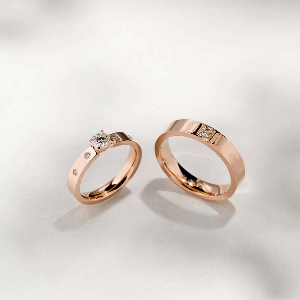 婚戒對戒象徵著兩人之間永恆的愛與承諾,並在日常中隨時陪伴著彼此。