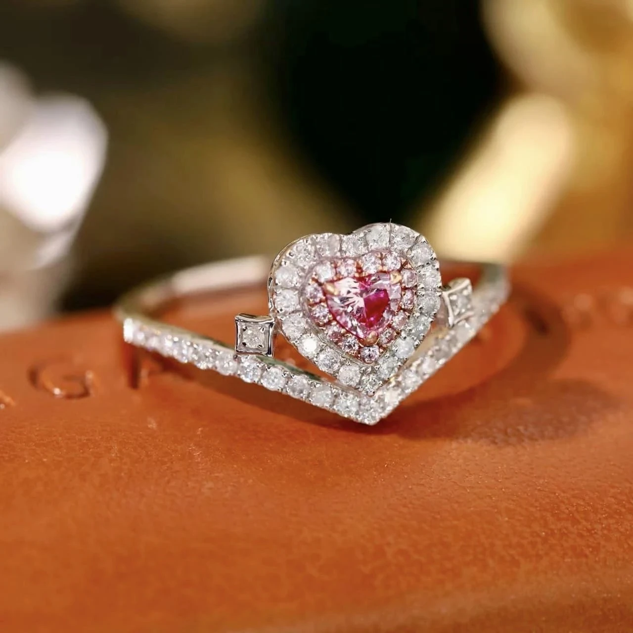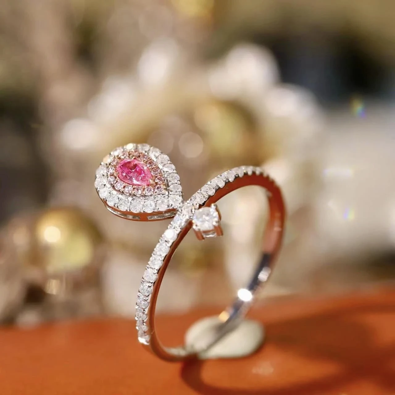 想像一下,一克拉白鑽搭配粉鑽線戒