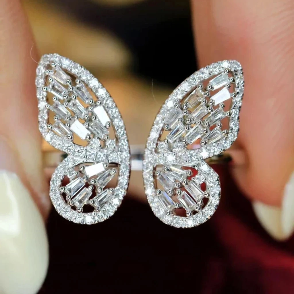 18K天然鑽石蝴蝶分色戒指