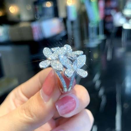 18K天然鑽石-三朵花大器戒指