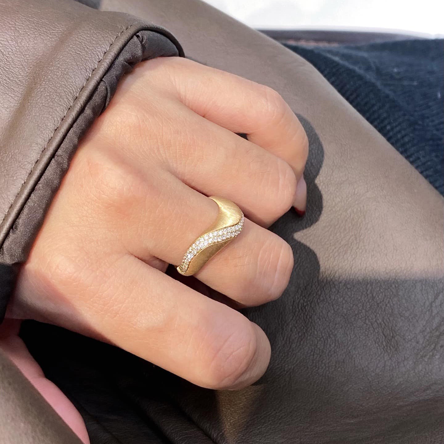 18K天然鑽石-拉絲藝術線條戒指