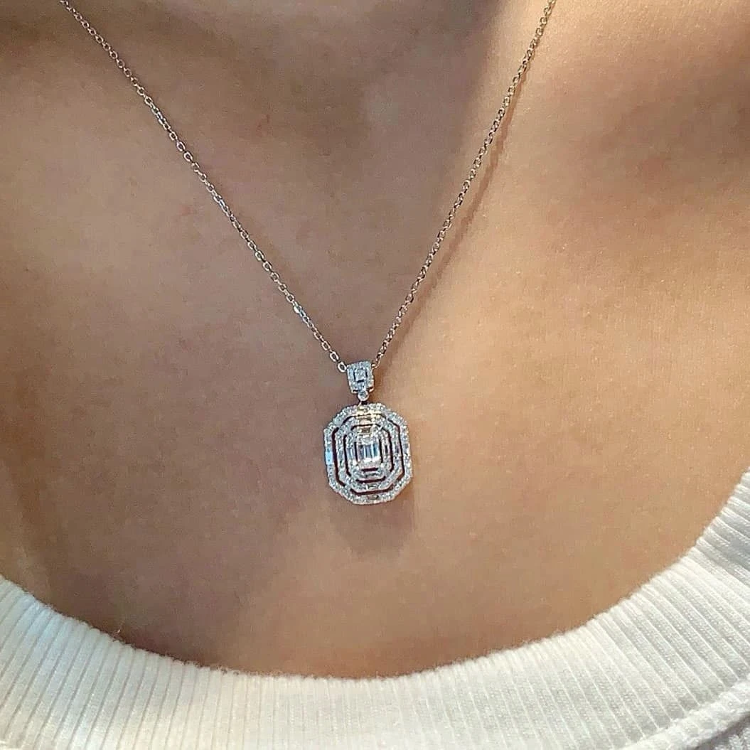 18K天然鑽石-祖母綠型拼鑲項鍊