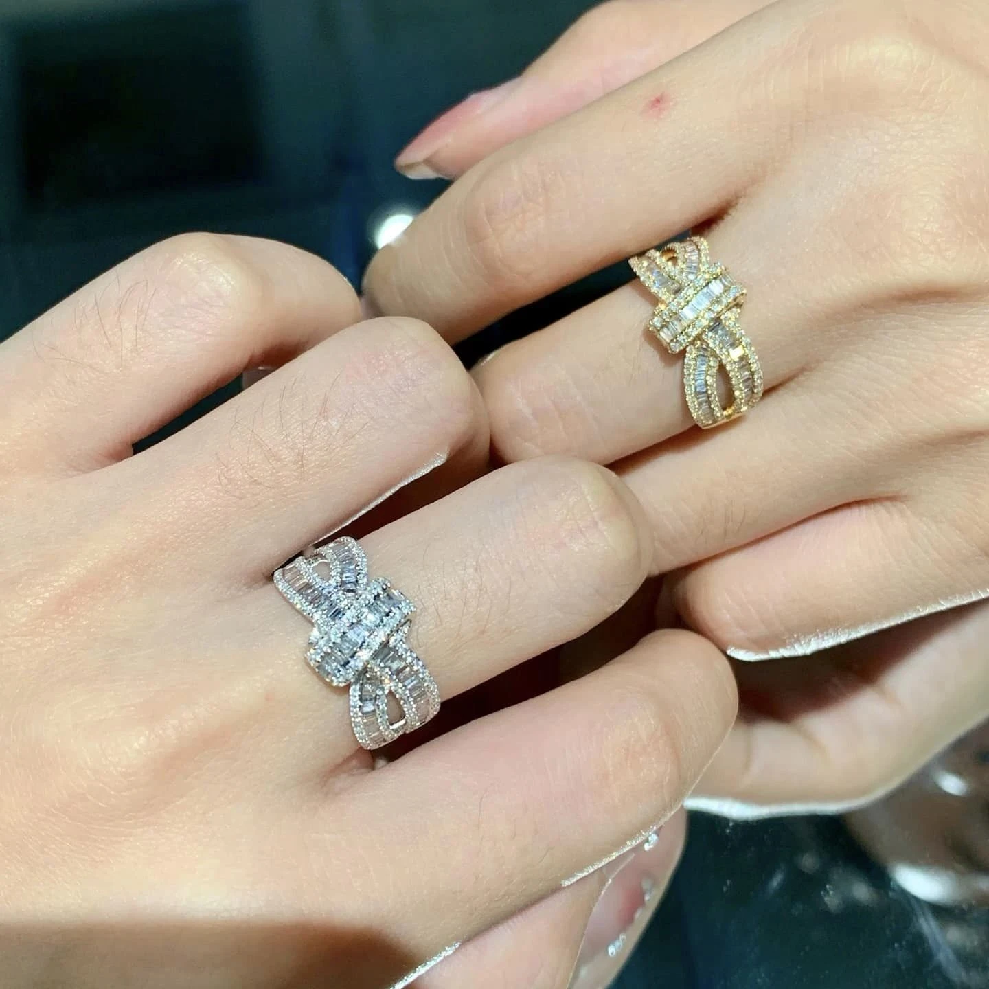 18K天然T方鑽打結戒指