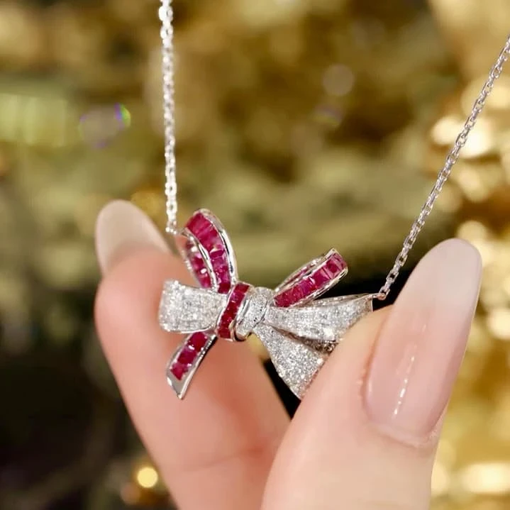 好秀氣的一款!紅寶石顏色嬌豔欲滴,附上18K鍊子超級划算!